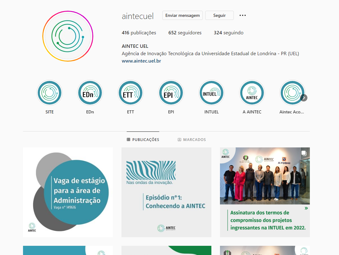 LinkedIn: AINTEC – Agência de Inovação Tecnológica da Universidade Estadual de Londrina.