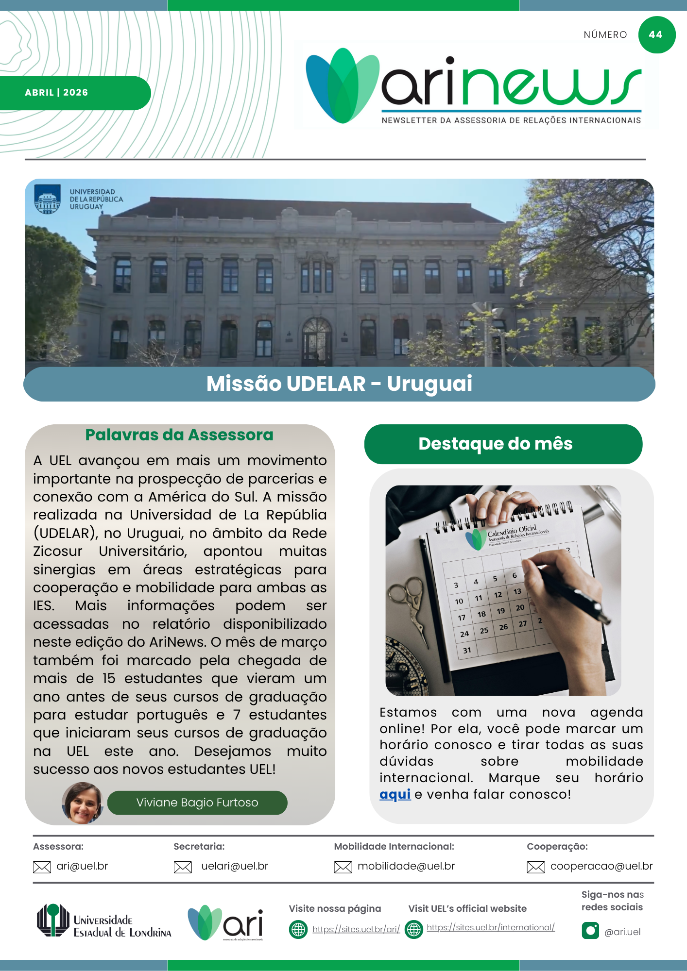 É com muito orgulho e alegria que a ARI registra um crescimento exponencial na demanda por serviços, programas e articulações institucionais relacionados ao contexto de internacionalização da UEL! Isto é um demonstrativo do comprometimento da universidade com a internacionalização e resultado da ampliação de suas ações. No entanto, junto a esta ampliação, faz-se necessária a […]