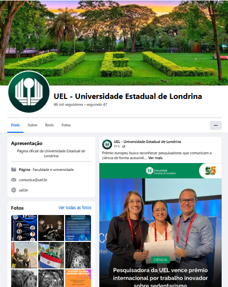 As redes sociais da UEL, gerenciadas pela COM, têm a missão de aproximar a comunidade e divulgar nossas atividades. Conecte-se à nossa comunidade digital e mantenha-se atualizado sobre o que acontece na UEL!