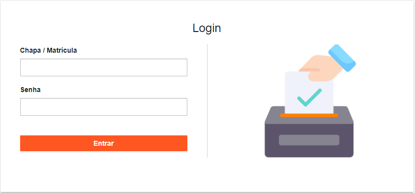Observe a sequência de telas, após escolher sua categoria entre com sua chapa/matrícula e sua senha: