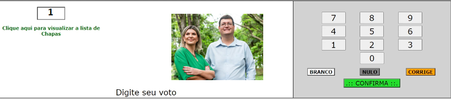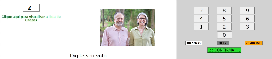 Escolha no teclado da urna o número da CHAPA escolhida, vai aparecer a foto dos candidatos, clique em CONFIRMA.