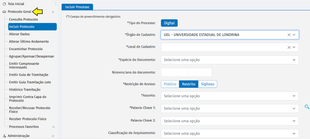 - Órgão: UEL – Universidade Estadual de Londrina (para encaminhar dentro da UEL);