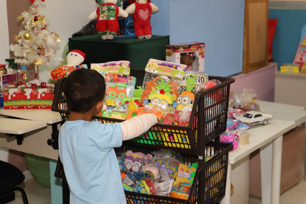 Para a realização da ação, a equipe do Hospital distribuiu vouchers às crianças internadas. O objetivo foi possibilitar que as crianças pudessem se deslocar até o espaço da lojinha e escolher pessoalmente o brinquedo desejado, proporcionando uma experiência mais próxima do ambiente natalino. Já nos casos em que, por razões de saúde, as crianças não puderam comparecer, os pais ou responsáveis realizaram a escolha dos presentes em nome dos filhos.