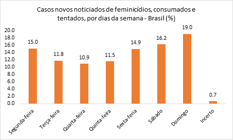 A média diária foi de 3,32 feminicídios consumados no Brasil.
