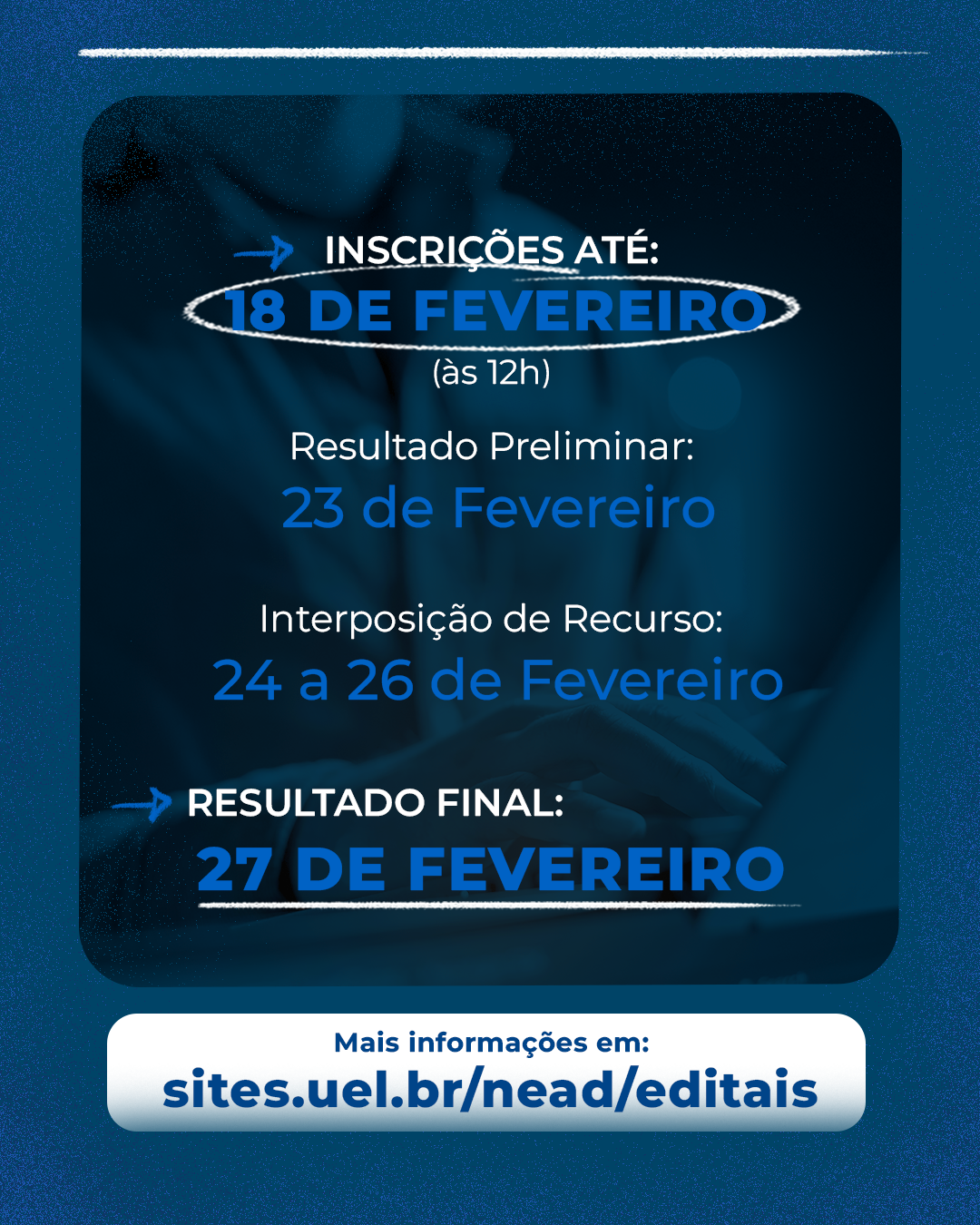 ⏰ O prazo de inscrições termina às 12h do dia 18 de fevereiro.