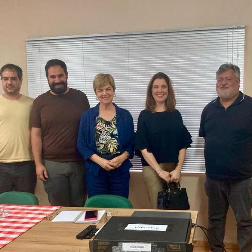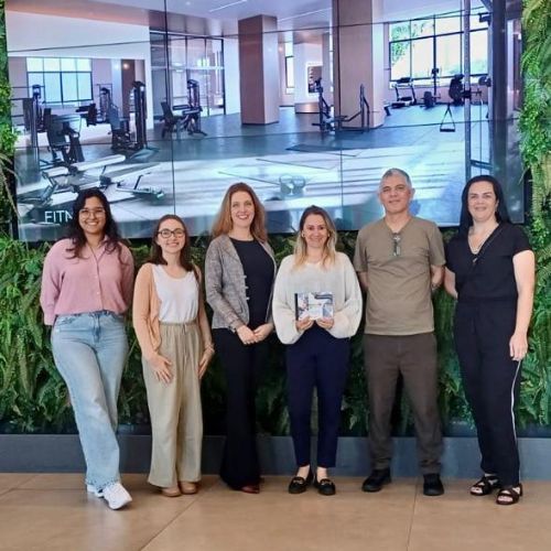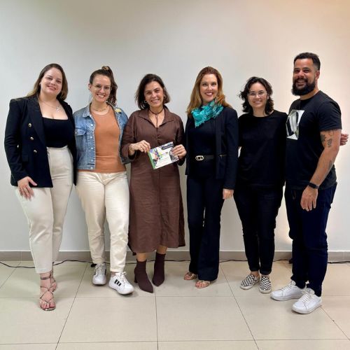 Na foto, estão presentes as assessoras técnicas do Ministério Público, Júlia Mariana Cunha Perini e Patrícia Lima Gongora, a Promotora de Justiça Révia Peixoto de Paula Luna, e a equipe do NINTER, composta pela Profª Drª Lilian Aligleri, pelo engenheiro Me. Felipe Nepomucemo Coimbra e pela administradora Marcela Koga.