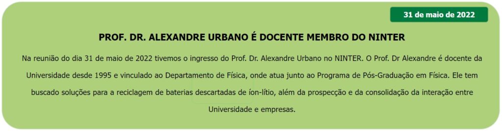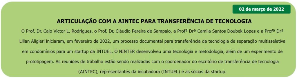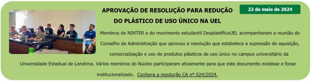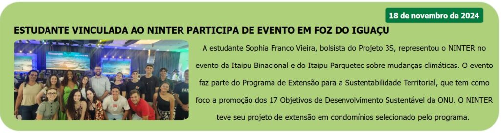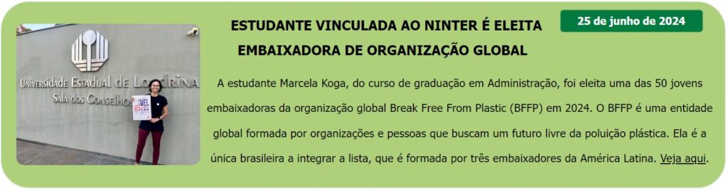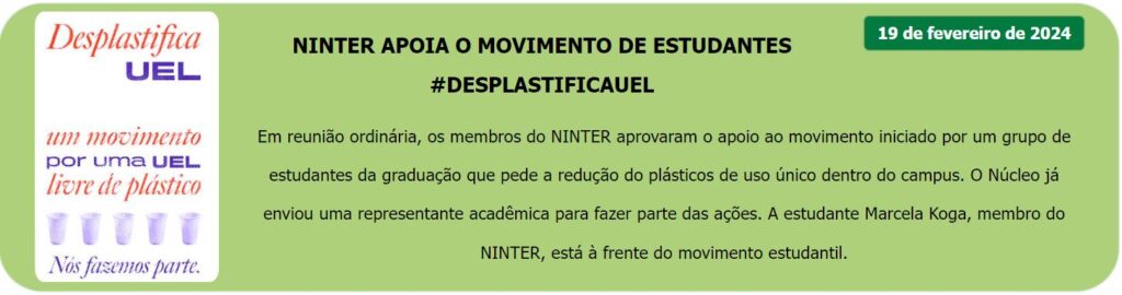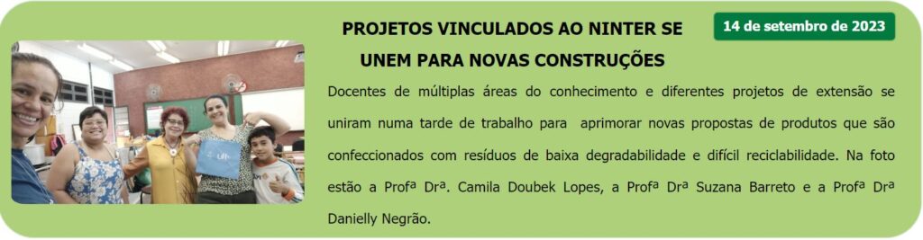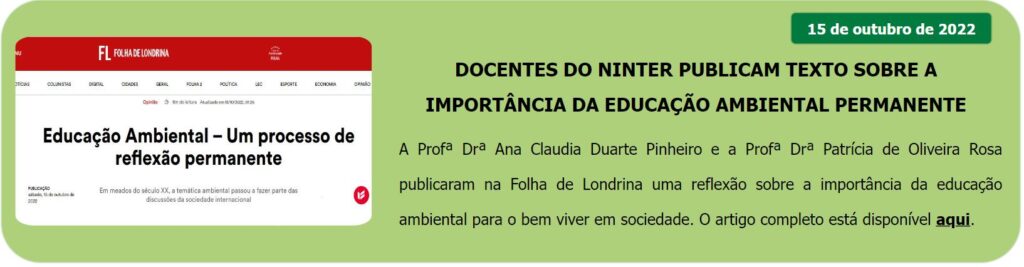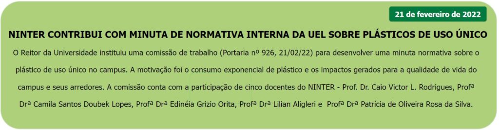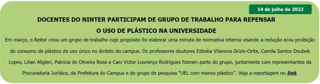 Esta atividade de reestruturação foi desenvolvida pela coordenadora do NINTER, Profª Drª Lilian Aligleri, em conjunto com a discente Hayane Vitoria Correia Genomio Marques.
