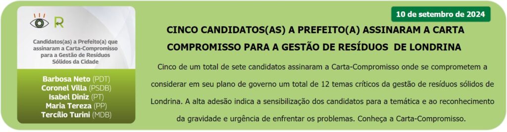 Estas novas estruturas e proposições são desdobramentos do Grupo de Trabalho instituído pelo Ministério Público para a elaboração de um novo modelo de gestão da coleta seletiva em Londrina.