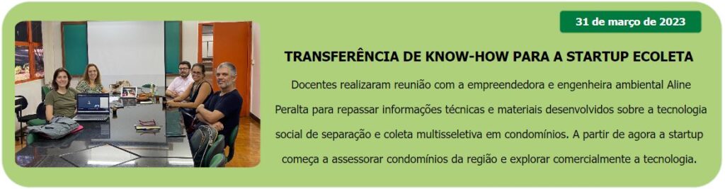 No dia 27 de janeiro, o Núcleo recebeu uma equipe de especialistas representantes da Itaipu Parquetec. Na ocasião, o NINTER teve a oportunidade de apresentar o desenvolvimento do Projeto 3S – Sensibilização e Separação Seletiva em Condomínios de Londrina e alguns dos resultados já alcançados na primeira rodada de implementação.