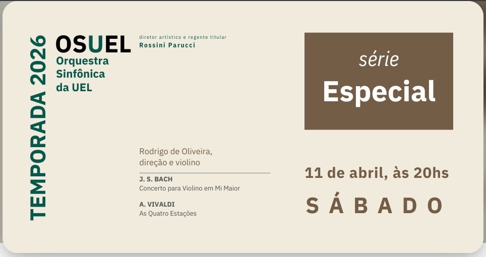 Nos dias 10 e 11 de abril, a OSUEL apresenta o primeiro concerto da Série Especial 2026, com um programa dedicado ao esplendor da música barroca.